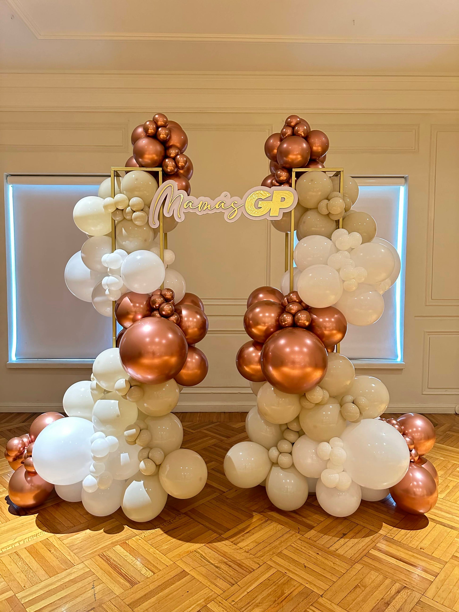 Dos columnas con globos + Letrero personalizado
